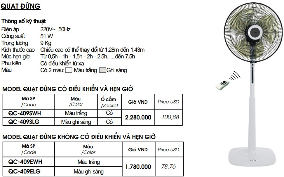 Dưới đây là giá bán cụ thể đủ các model quạt LiOA dân dụng và công nghiệp cập nhật mới nhất :