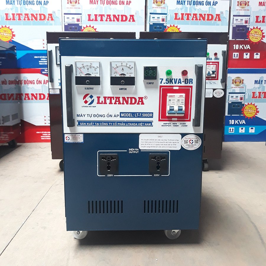 Ổn áp Litanda 7,5KVA 7,5KW dải 90V – 250V DR đời mới NEW 2021 sản xuất tại công ty cổ phần Litanda Việt Nam. Sản phẩm Cam kết 100 % dây đồng, đủ công suất, máy chạy êm, tiết kiệm điện,…